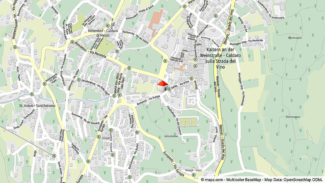 Tutti i servizi e i negozi principali sono facilmente raggiungibili, così come i pittoreschi vigneti che circondano Caldaro sulla Strada del Vino.