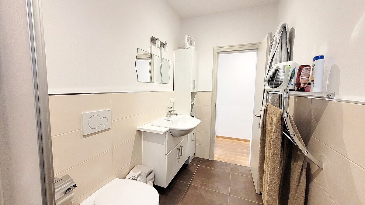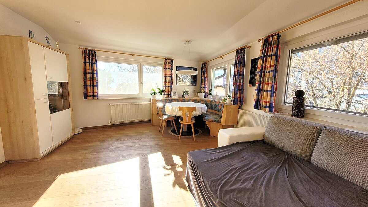 Al secondo piano di una curata palazzina del 1972 si trova questo ampio appartamento ristrutturato, esposto a sud e ovest, con una superficie lorda di 127 m². La posizione in Vicolo D’Oro offre un ambiente abitativo tranquillo e allo stesso tempo centrale.