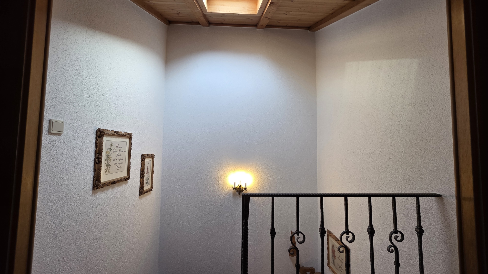 Il piano sottotetto dispone di una ulteriore camera da letto, un bagno e un balcone particolarmente accogliente. Da qui si gode di un suggestivo panorama sulle montagne circostanti.