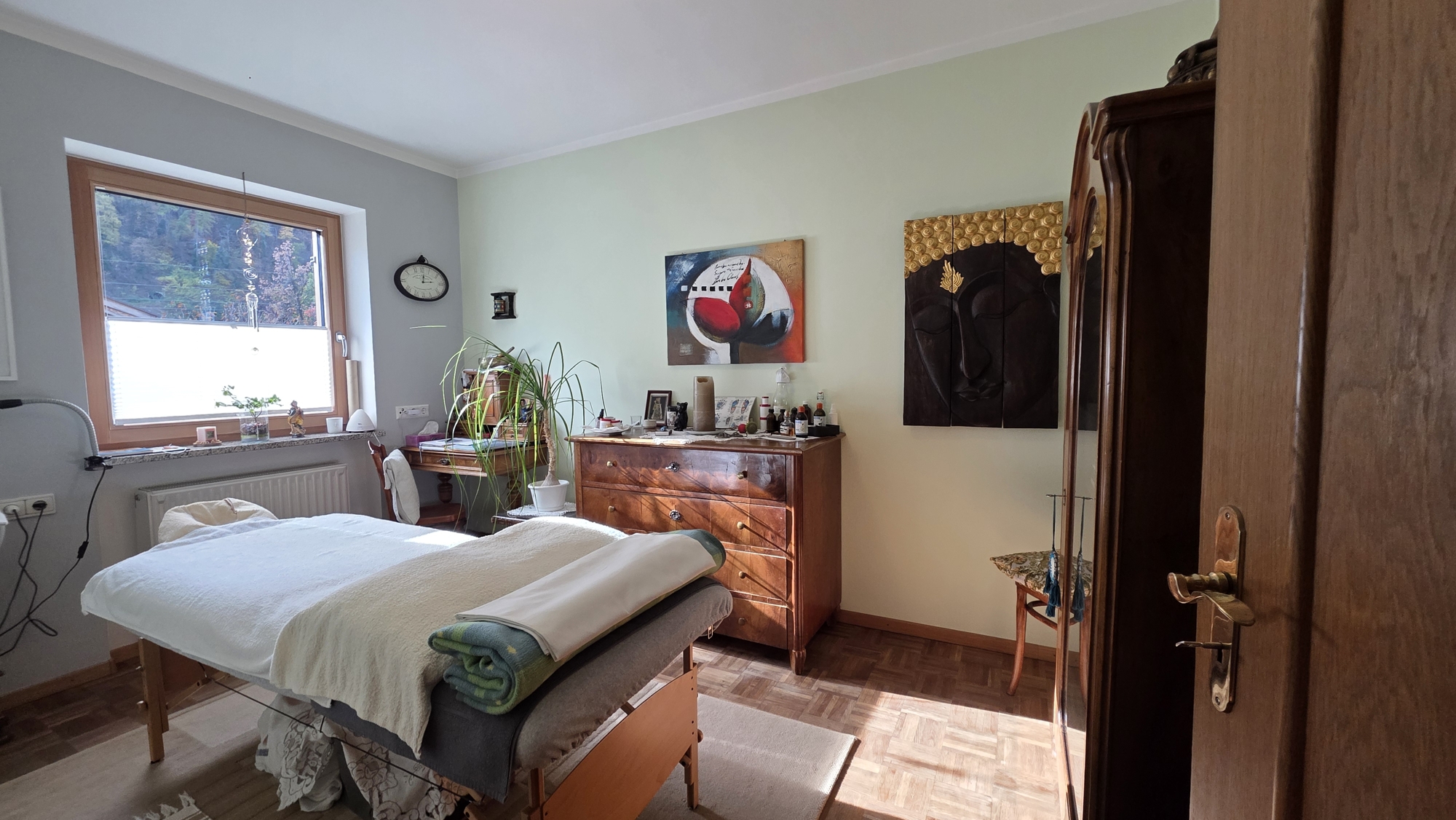 Questa affascinante casa a schiera d’angolo, situata in una zona residenziale assolutamente tranquilla di Foresta, colpisce per la sua atmosfera accogliente, una distribuzione degli spazi ben studiata su più livelli e una splendida vista sulle catene montuose circostanti. Una soluzione abitativa ideale per chi apprezza la quiete, la qualità dell’abitare e un forte senso di casa.