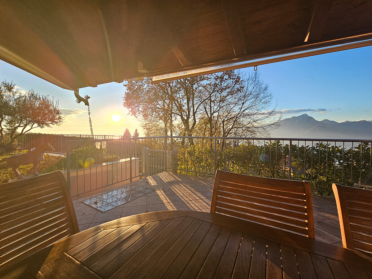 La proprietà si apre su una grande veranda coperta, ideale per pranzi all’aperto e momenti di relax, affiancata da un balcone panoramico con vista suggestiva sul paesaggio circostante.
