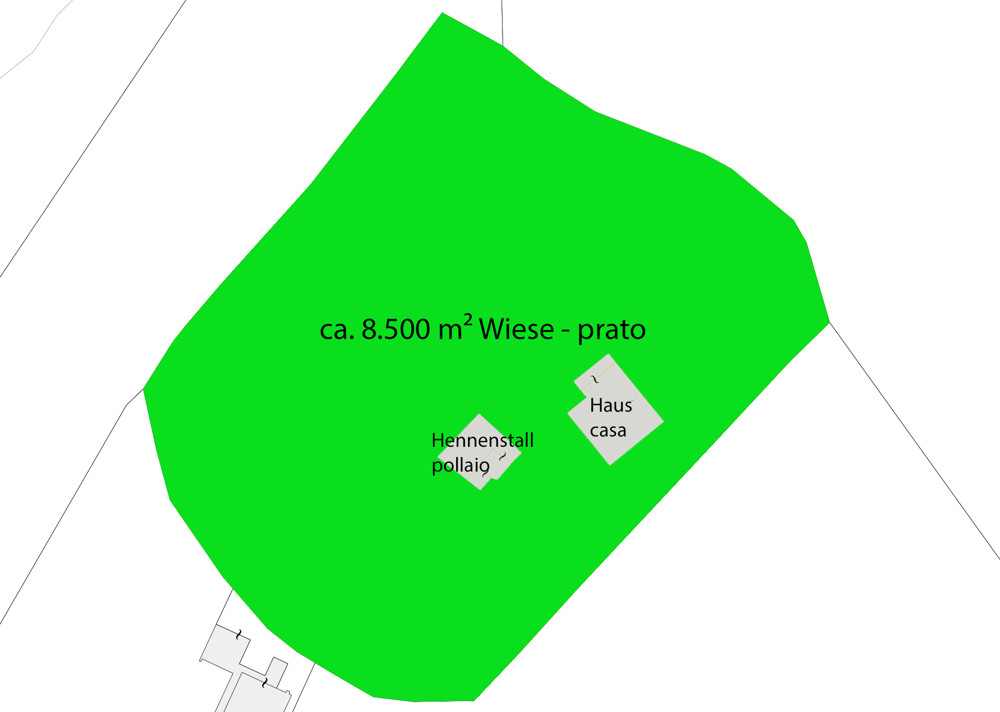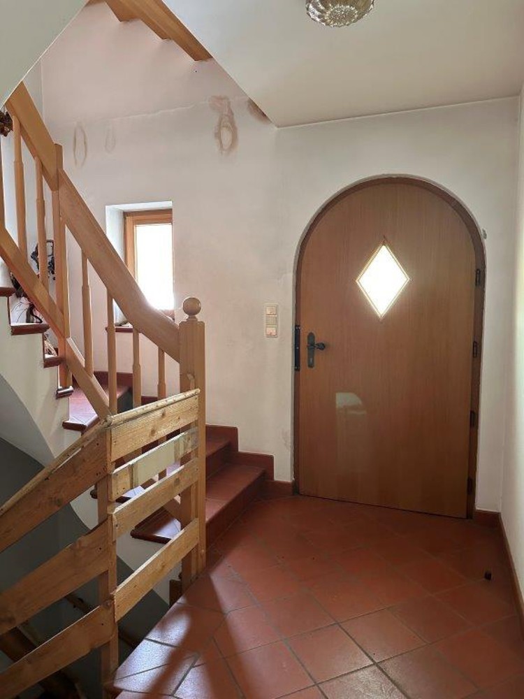 La casa bifamiliare indipendente in una zona rurale con vista panoramica è libera da vincoli fondiari ed è adatta anche come casa per le vacanze o seconda residenza. Il piano terra con l'ampio garage, il locale caldaia e le numerose cantine, i due appartamenti sovrastanti e la soffitta offrono molto spazio. Internamente, tutti i piani sono collegati da una scala con due ingressi. Un terreno di circa 8.500 m² circonda l'edificio. Un ulteriore appezzamento di terreno con pollaio è adiacente.