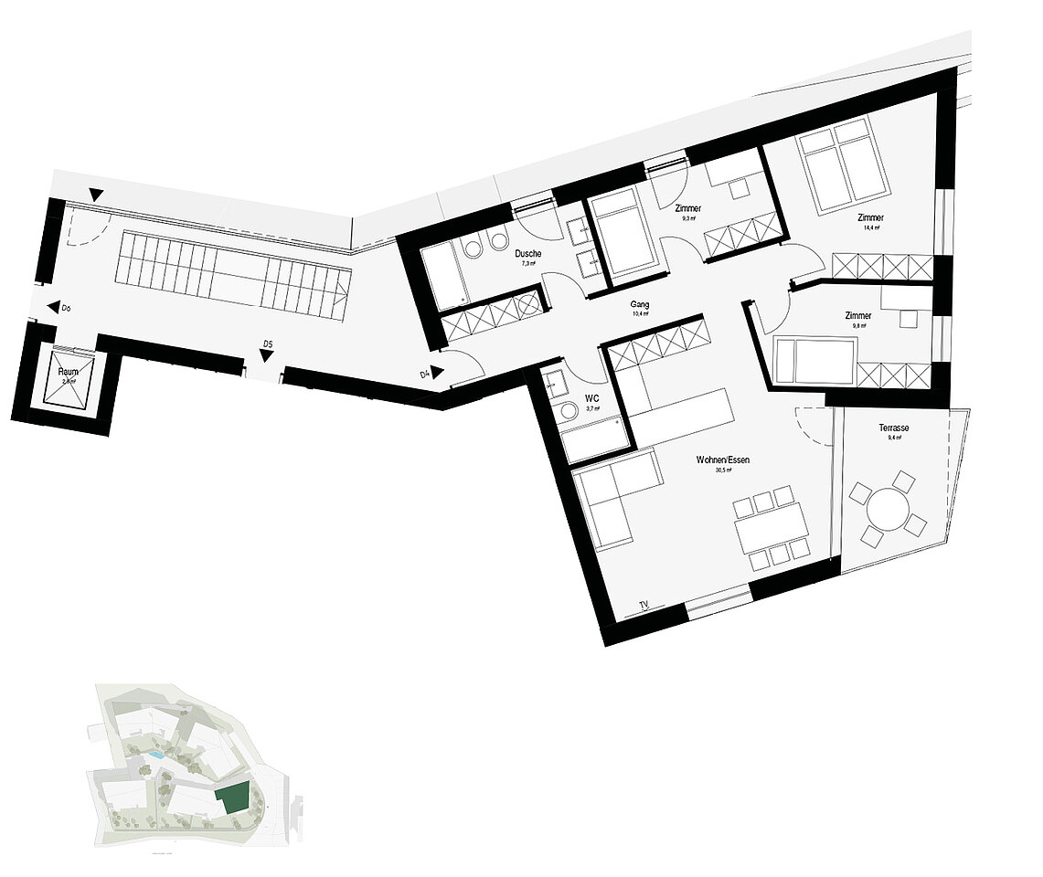 Questo quadrilocale nel progetto di nuova costruzione Gisser a St. Sigmund offre una superficie abitabile netta di circa 85 metri quadrati per realizzare la casa dei vostri sogni.