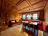 Il salotto tirolese crea un'atmosfera autentica, mentre un ufficio, un bagno diurno e un ripostiglio con accesso all'esterno offrono comfort e funzionalità.
