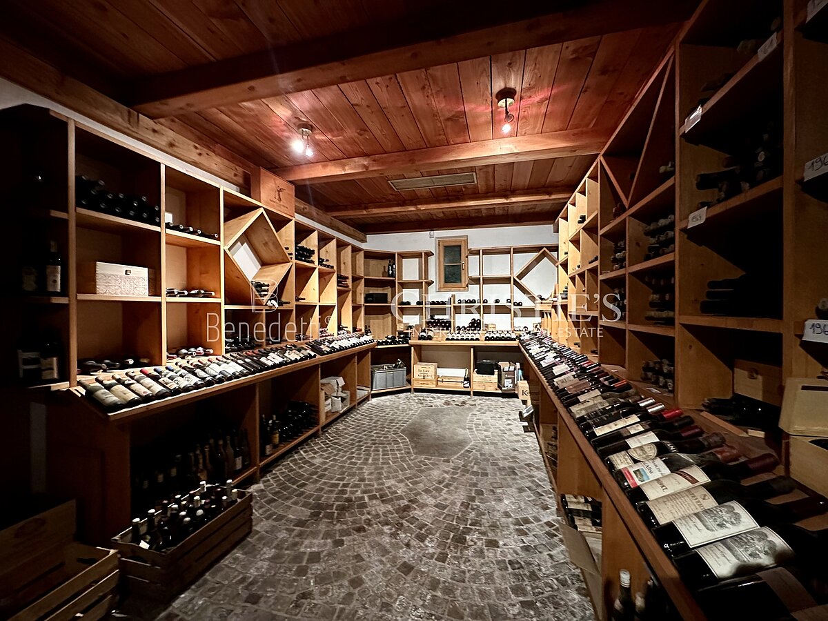 Per gli amanti del vino, la casa offre diverse cantine, ideali per la lavorazione o la conservazione di vini pregiati. Una tradizionale cantina con pancetta affumicata e altri locali della cantina e saloni con tavolo da biliardo sottolineano il carattere unico della casa.