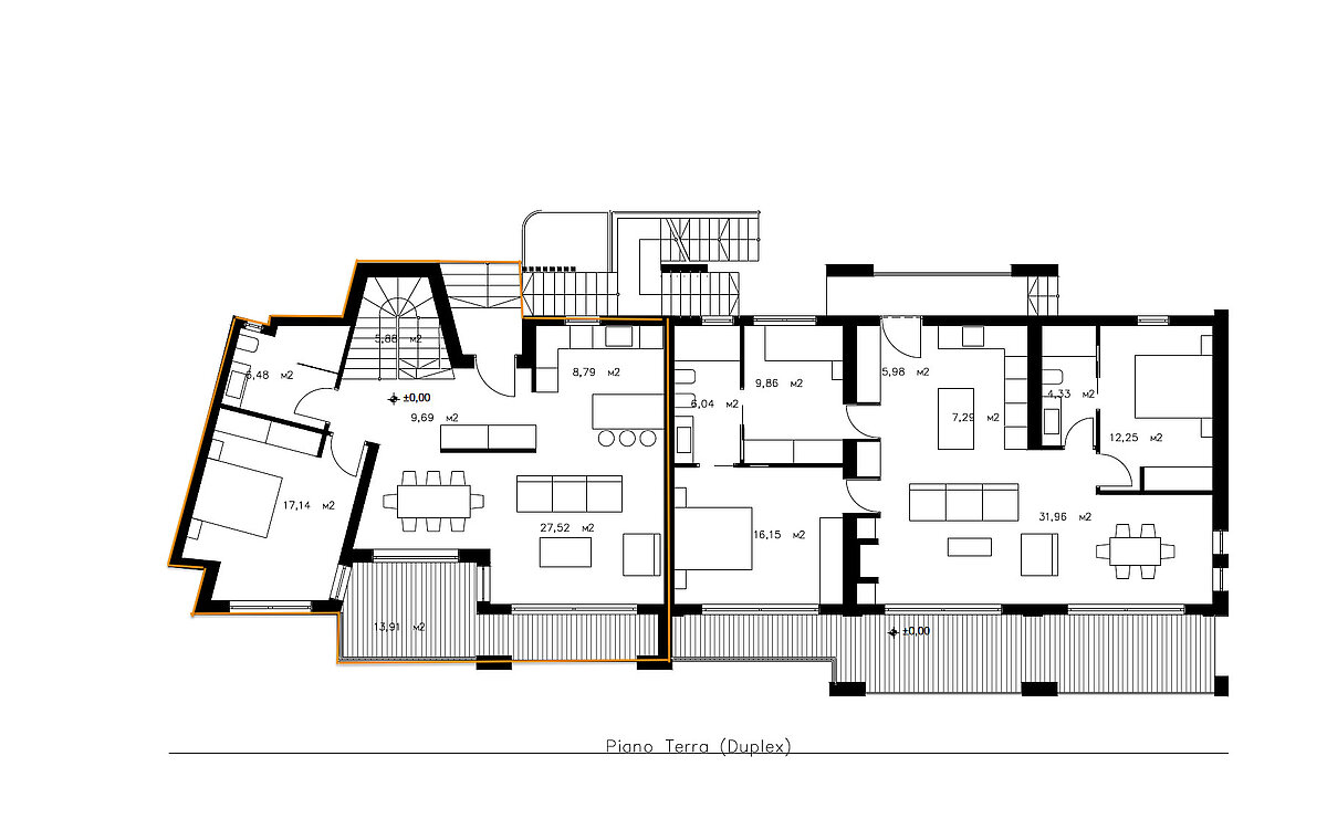 La zona living, concepita in stile open-space, affascina per il suo design fluido e raffinato. Cucina, zona pranzo e soggiorno si fondono in un ambiente generoso, inondato di luce naturale, che invita al relax e alla convivialità.