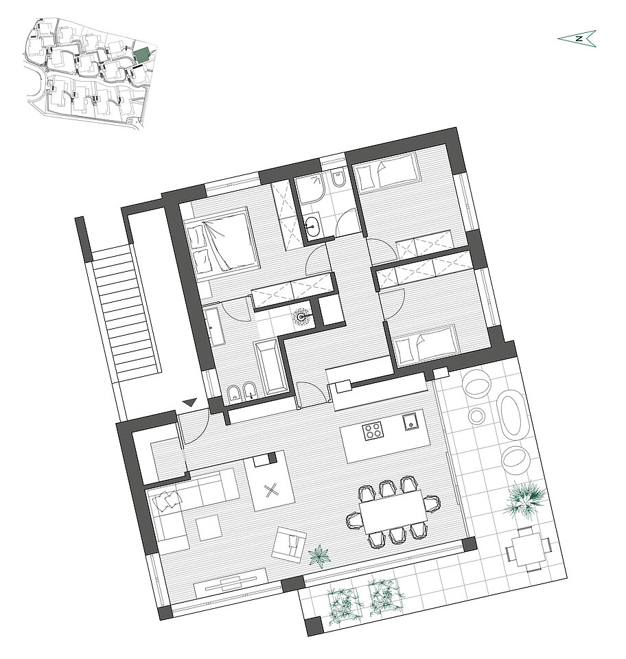 Questo attico di alta qualità nel complesso residenziale “Christelehof” combina il perfetto equilibrio tra vicinanza alla città e vicinanza alla natura. Qui si può godere di una splendida vista su Bressanone, mentre il bosco adiacente valorizza ulteriormente la posizione. La zona giorno luminosa con cucina abitabile e forno moderno sono il centro dell‘appartamento. Ci sono tre camere da letto, tra cui una camera matrimoniale con bagno privato e due camere per bambini. Un altro bagno garantisce un comfort aggiuntivo. Il punto forte è l‘ampia terrazza, che invita a rilassarsi e godersi il panorama. Una grande cantina, ideale come palestra o studio, e un garage doppio completano l‘offerta. L‘immobile non è convenzionato e può quindi essere utilizzato anche come appartamento per le vacanze.