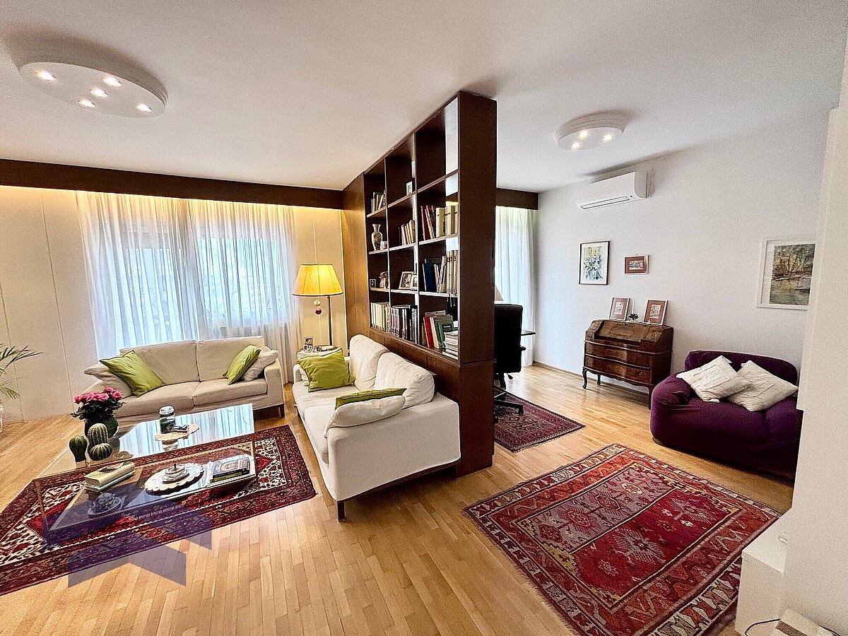 La vicinanza immediata a un grande centro commerciale, l'ottimo collegamento con il centro città e la generosa distribuzione degli spazi rendono questo appartamento un rifugio per giovani e meno giovani.