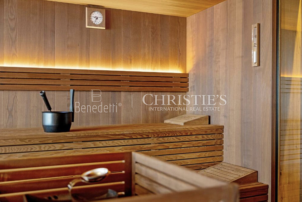 Al piano terra si apre una raffinata area wellness pensata per il relax più completo: sauna finlandese e sauna biologica, accompagnate da un ampio spazio relax e da due docce benessere. All’esterno, una suggestiva vasca idromassaggio a sfioro invita a momenti di puro piacere, con accesso diretto al giardino. Completano il livello un bagno dedicato alla zona benessere e una sala home cinema, ideale per serate in totale privacy.