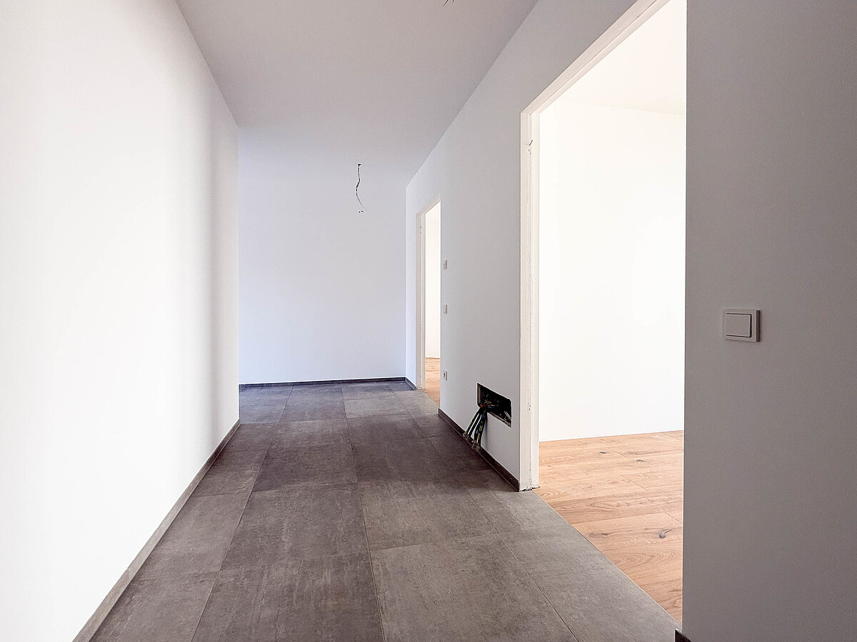 Questo esclusivo appartamento di nuova costruzione al 2° piano offre una disposizione degli ambienti ben studiata, con un ampio soggiorno dotato di un moderno angolo cottura, tre comode camere da letto e due eleganti bagni. L'area esterna convince con due ampie terrazze e un giardino privato, ideale per trascorrere ore di relax all'aperto. È possibile acquistare anche posti auto in garage.