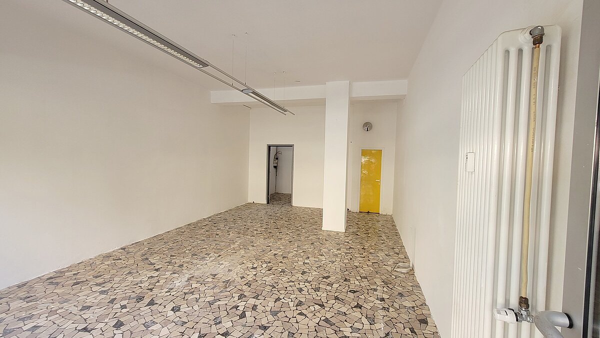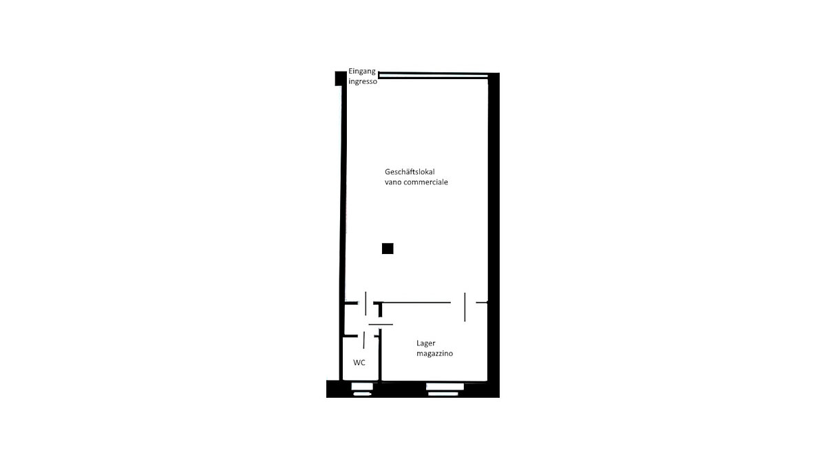 Vano locale luminoso al piano terra con vetrina, ideale per vendita, consulenza ecc., con piccolo magazzino e Wc.