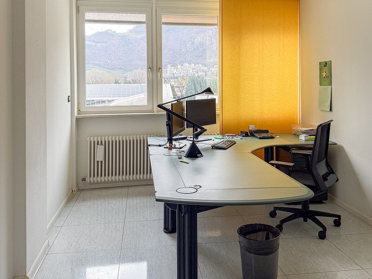 Ampio e luminoso ufficio di ca. 260 m² in zona industriale a Bolzano, al terzo piano di un edificio in una posizione strategica e facilmente raggiungibile. L’immobile si presenta in ottime condizioni generali ed è costituito da nove uffici già separati, doppi servizi e un ufficio amministrativo all’ingresso. Disponibile dal 01.07.2025.