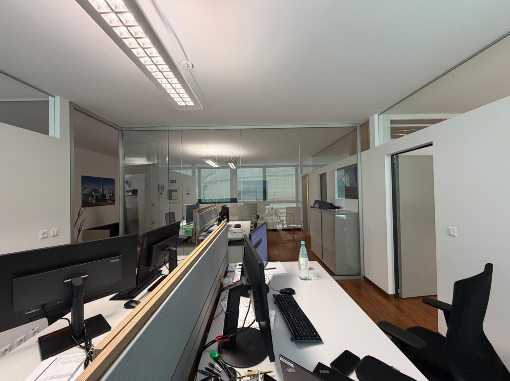 L’attuale arredamento dell’ufficio, l’illuminazione e le pareti divisorie in vetro appartengono all’attuale inquilino e verranno rimossi al momento del trasferimento. L’ufficio verrà quindi consegnato vuoto, permettendo al futuro conduttore di organizzare gli spazi secondo le proprie esigenze.