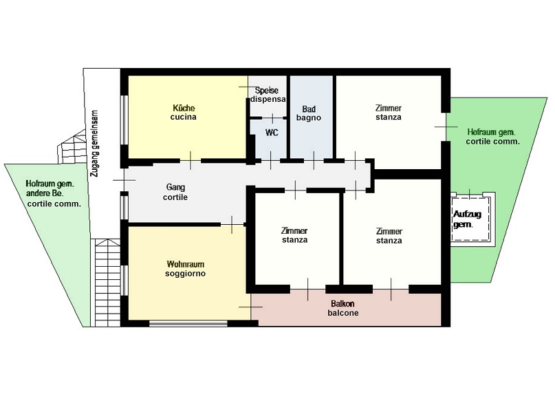 Poiché l'appartamento è comunque da ristrutturare, la disposizione delle stanze può naturalmente essere adattata ai propri desideri. L'appartamento è esposto a sud-est e dispone di una cantina, un ascensore e due posti auto al piano terra. L'edificio corrisponde alla classe energetica C e il calore è fornito dal teleriscaldamento.
