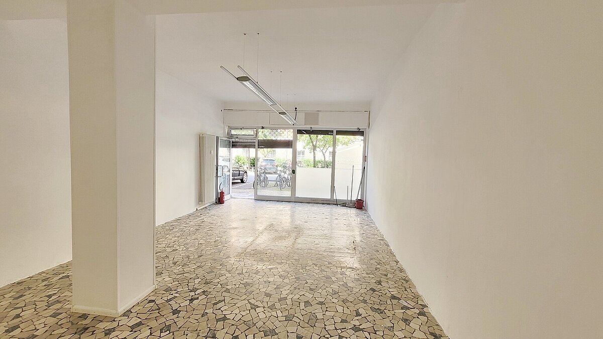 Vano locale luminoso al piano terra con vetrina, ideale per vendita, consulenza ecc., con piccolo magazzino e Wc.