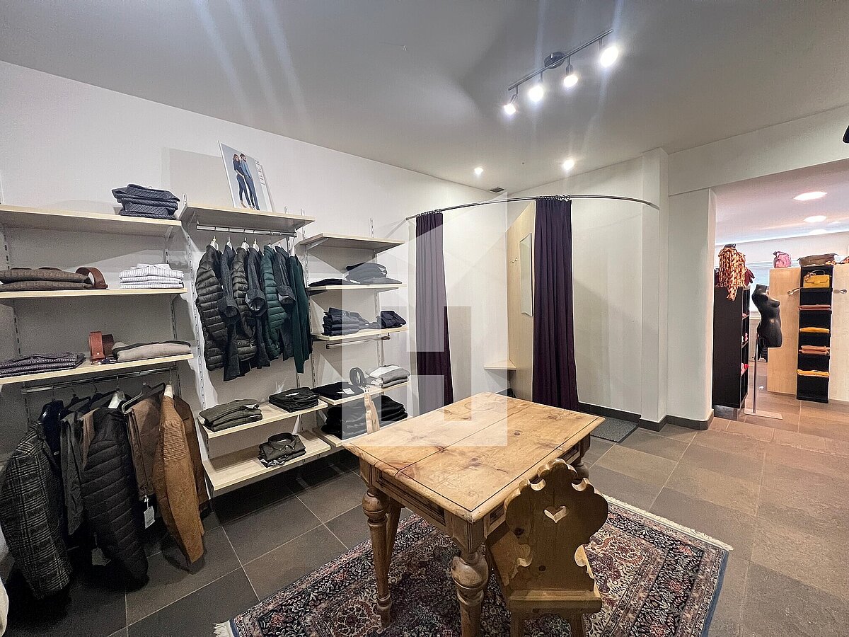 Stiamo vendendo un negozio nel centro di Termeno con molte finestre per una luce particolarmente intensa.