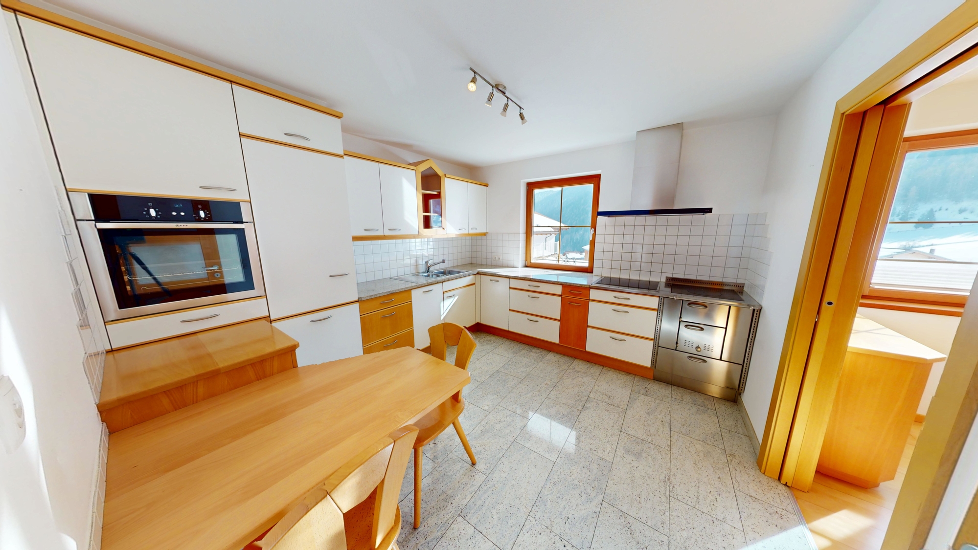 L'appartamento dispone di una cucina a legna. Il calore viene scambiato nell'appartamento tramite il riscaldamento a pavimento e riscaldamento a parete nel soggiorno.