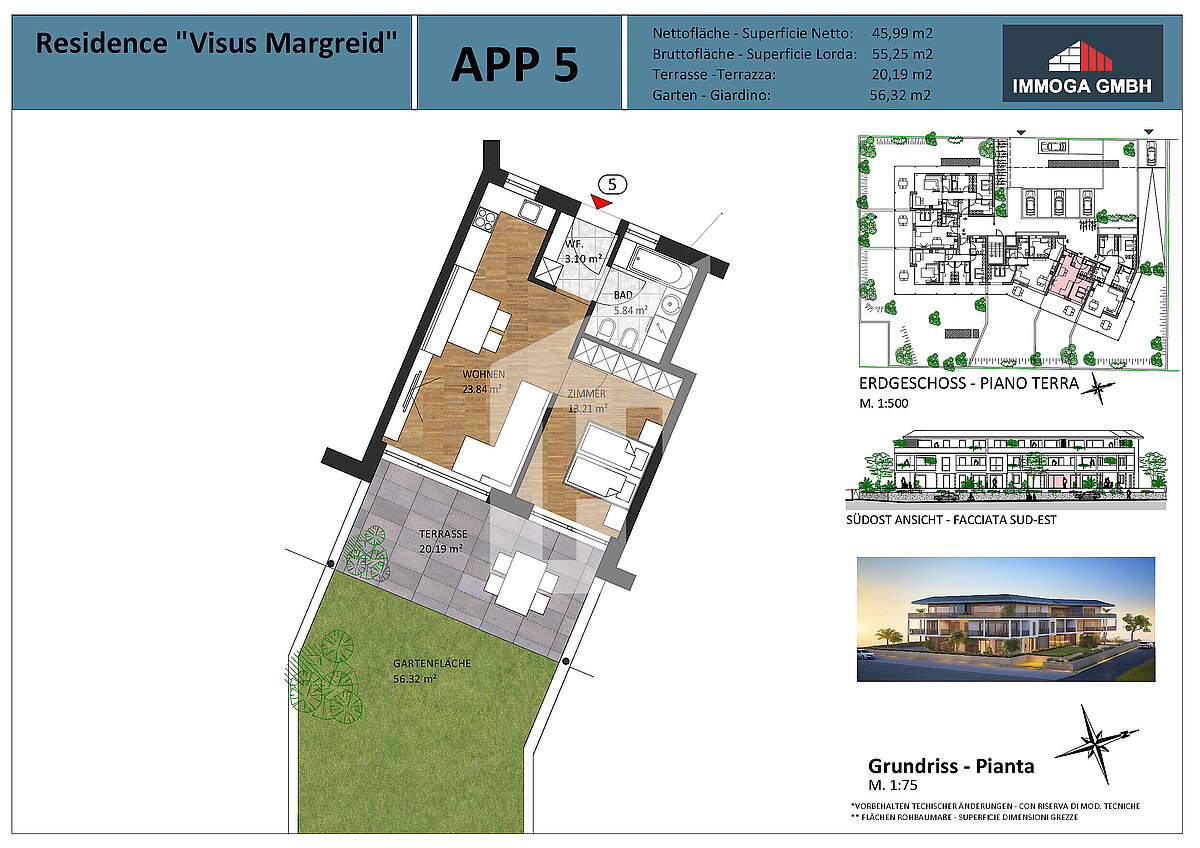 Ogni appartamento dispone di una cantina e è possibile acquistare garage. L'edificio verrà costruito secondo lo standard CasaClima „A Nature“.