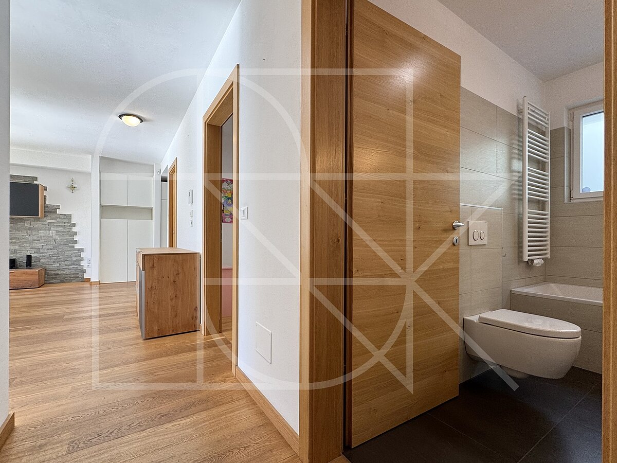 In ottima posizione soleggiata e tranquillissima, nell’idilliaco paese di Postal, proponiamo in vendita esclusiva questo elegante trilocale molto luminoso con ampio giardino. Questo moderno e ampio appartamento si distingue per la distribuzione intelligente degli spazi interni e l’elevata qualità delle sue finiture.