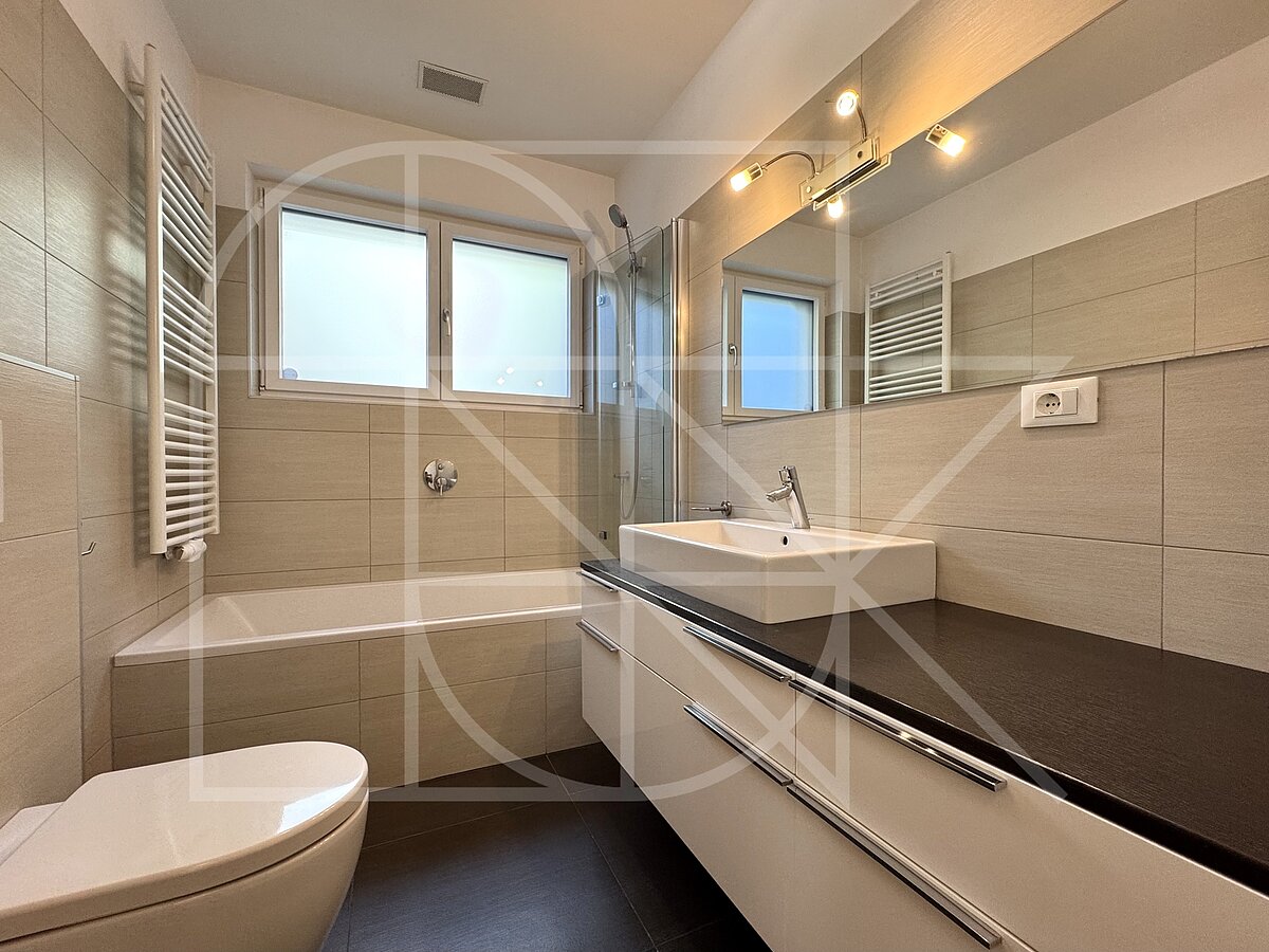 La camera principale con cabina armadio garantisce spazio, tranquillità e privacy. Un’ulteriore stanza confortabile può essere utilizzata come camera per bambini, studio o camera per gli ospiti, a seconda delle esigenze. Il bagno principale, moderno e finestrato, è dotato di una vasca da bagno accogliente, trasformandosi così in una piccola oasi di benessere.