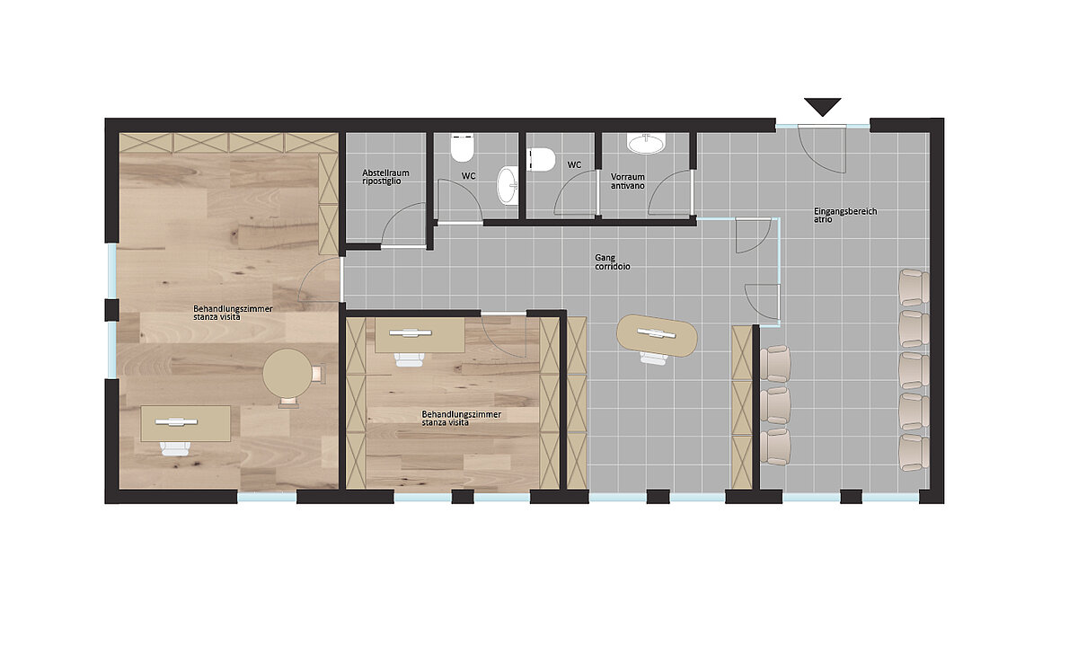 L'immobile convince per la sua posizione centrale e ben visibile, per la breve distanza dalle infrastrutture e per l'ambiente professionale che crea le condizioni ideali per uno studio professionale di successo.