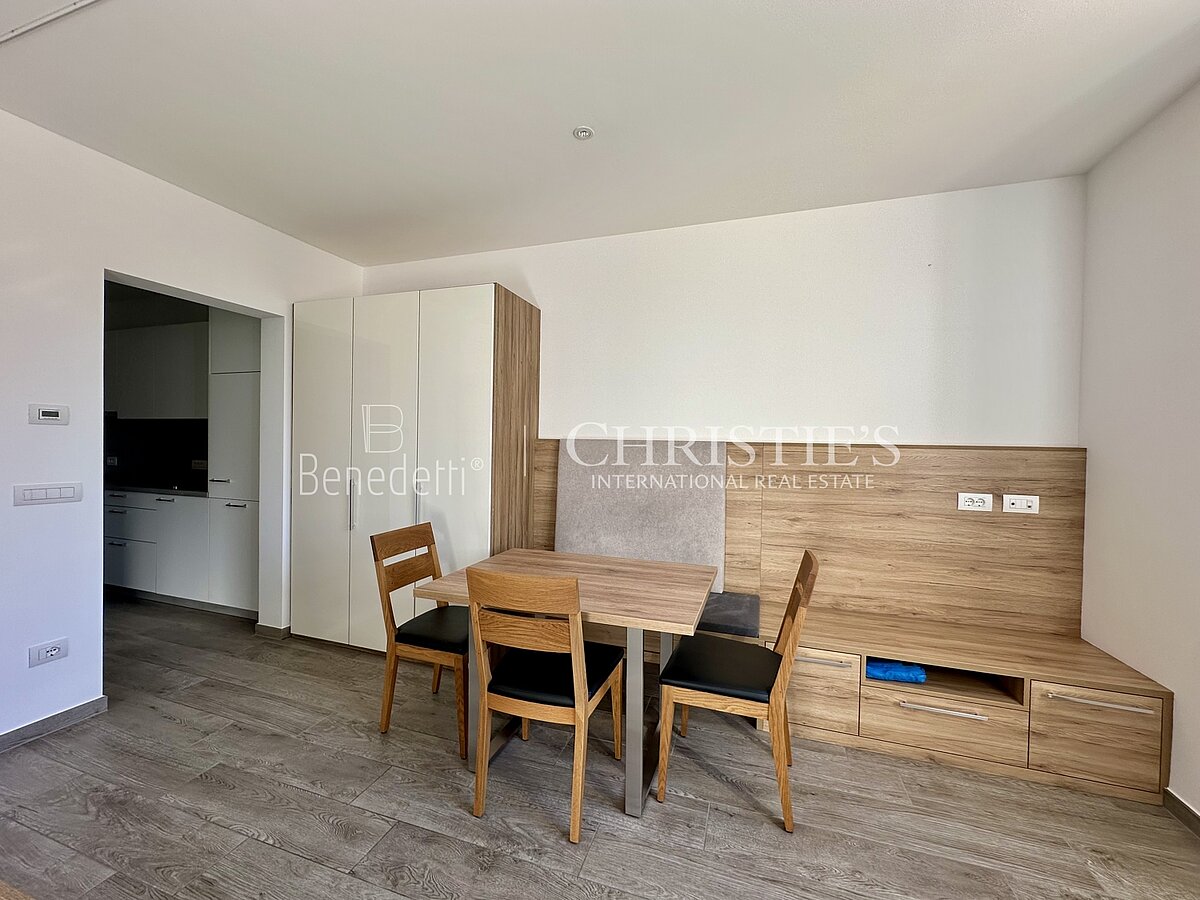 Questo affascinante monolocale si trova direttamente negli storici portici di Merano e colpisce per la sua riuscita ristrutturazione, l'arredamento moderno e la posizione centrale.