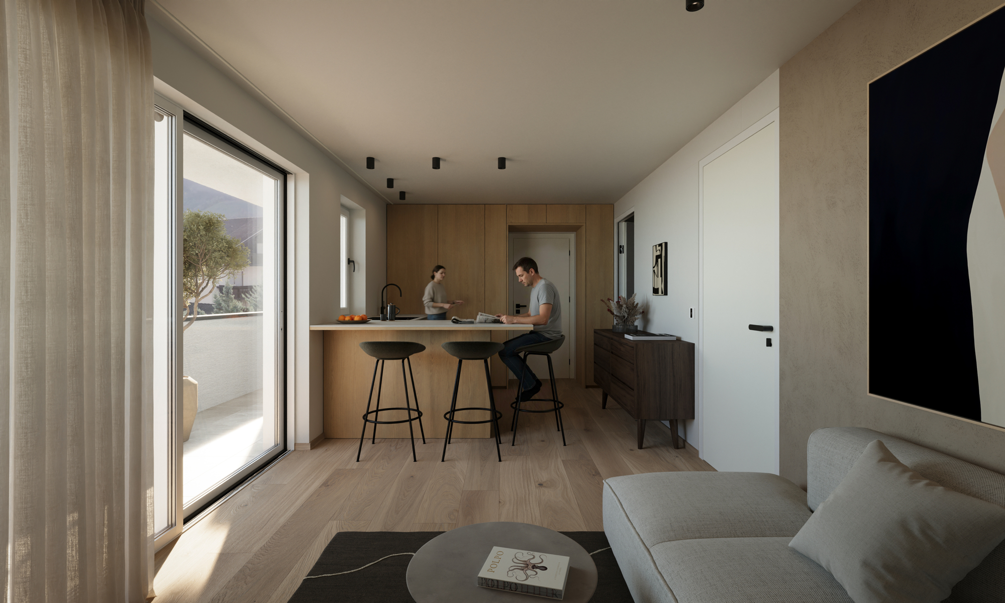 Le planimetrie ben studiate e la chiara struttura architettonica creano spazi abitativi luminosi e facilmente utilizzabili che soddisfano le esigenze della vita quotidiana e il desiderio di comfort e privacy. La vicinanza al centro del paese consente di percorrere brevi distanze, mentre la tranquillità dell'ambiente circostante garantisce una vita rilassata.