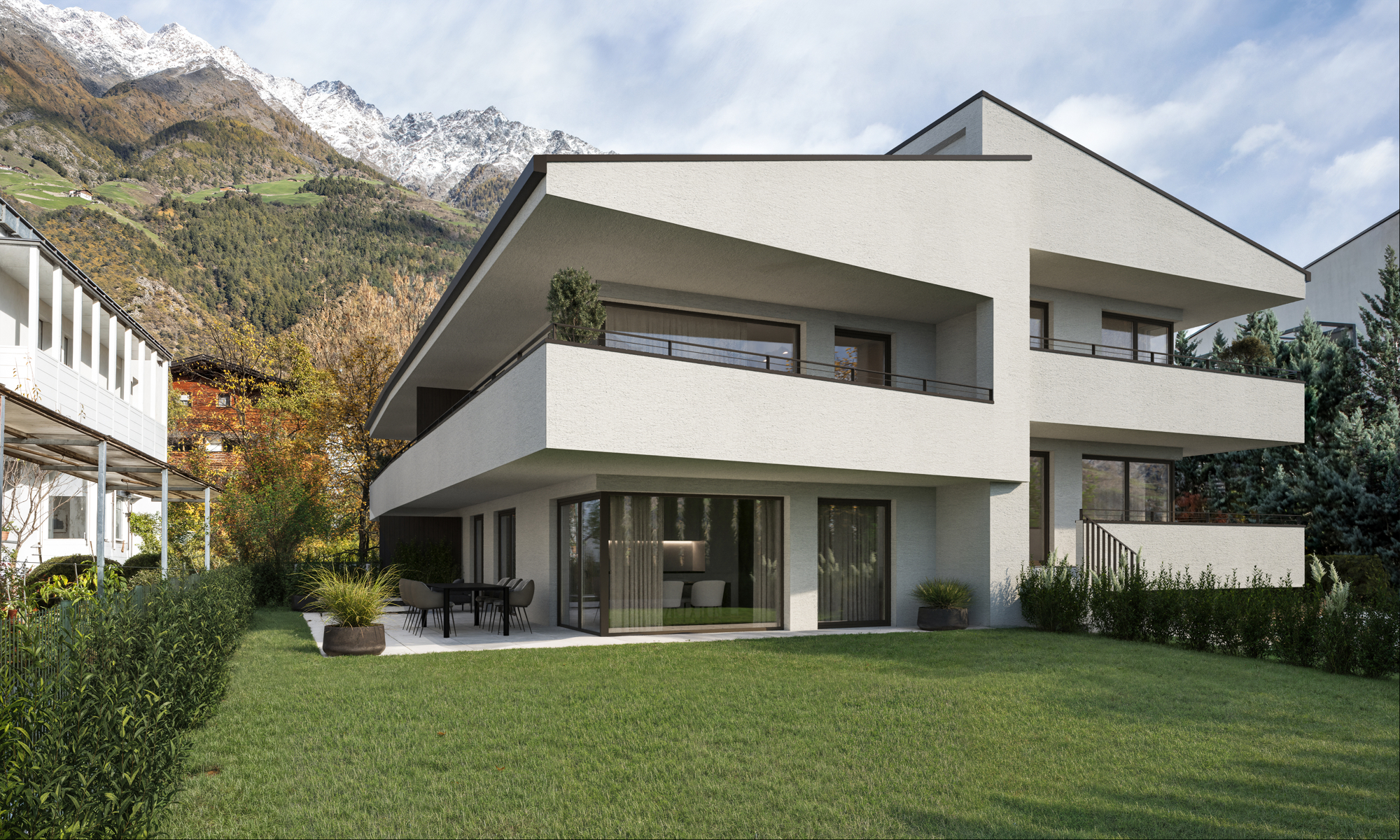 Haus Idris è un edificio residenziale di solo sette unità abitative in una posizione tranquilla vicino al centro del paese. L'edificio si inserisce armoniosamente nel quartiere esistente e offre spazi abitativi contemporanei.