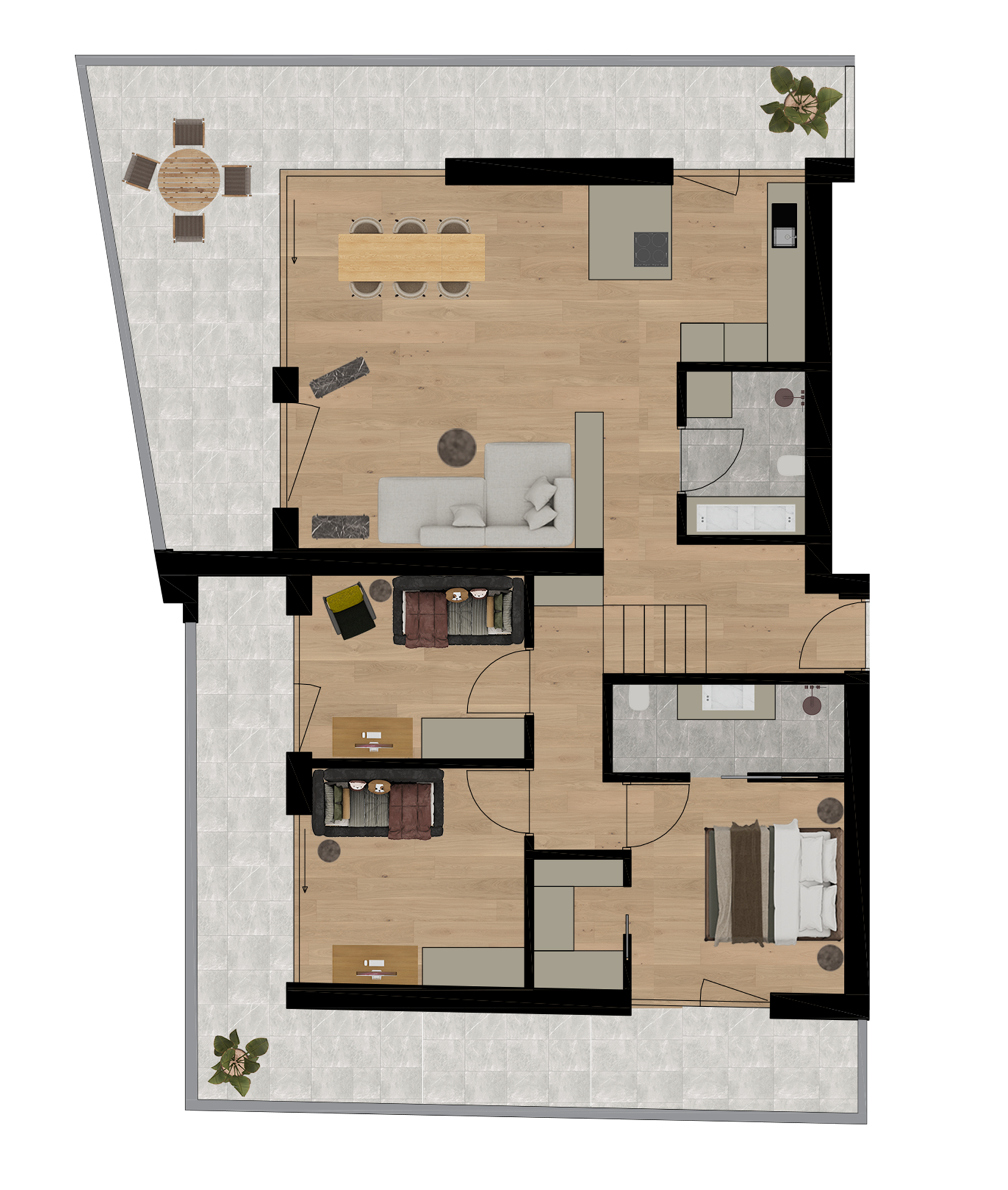 Le planimetrie ben studiate e la chiara struttura architettonica creano spazi abitativi luminosi e facilmente utilizzabili che soddisfano le esigenze della vita quotidiana e il desiderio di comfort e privacy. La vicinanza al centro del paese consente di percorrere brevi distanze, mentre la tranquillità dell'ambiente circostante garantisce una vita rilassata.