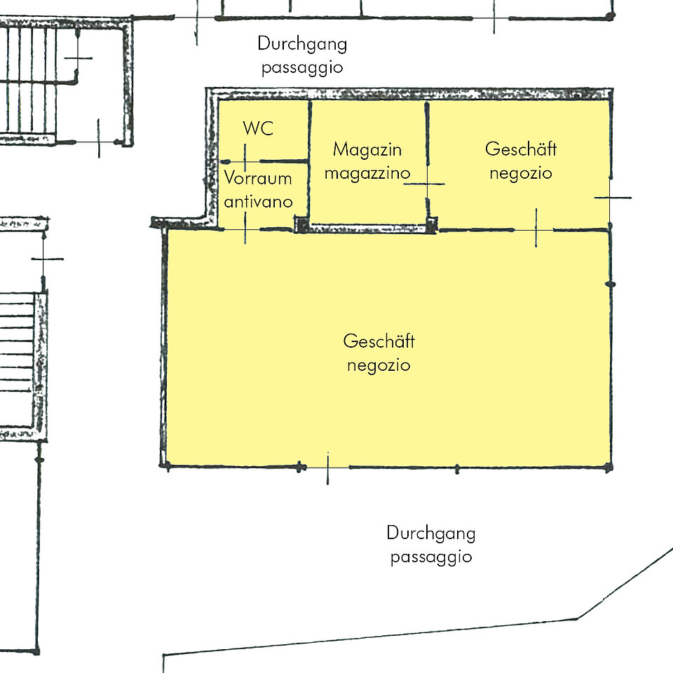 Negozio affittato con ottima visibilitá dalla strada dotato di magazzino, WC e parcheggio adiacente. Ottimo Investimento con 5% di rendita.