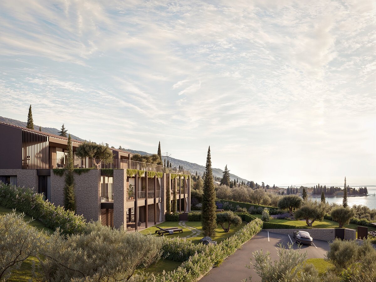 Nuovo appartamento con vista mozzafiato sul lago in un innovativo progetto residenziale a Torri del Benaco, ora in vendita.