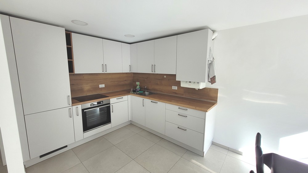 L'appartamento dispone di un corridoio luminoso, un soggiorno con un nuovo angolo cottura arredato (ovviamente con lavastoviglie) ed il riscaldamento autonomo. Inoltre offre un bagno spazioso finestrato in un design classico e moderno e di due stanze da letto (oppure una stanza e studio). Una cantina nel piano interrato completa questa proposta.