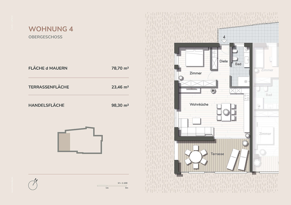 Gli appartamenti della Residence Klaus uniscono l’abitare moderno a una costruzione sostenibile e a un elevato comfort abitativo. Il nuovo complesso residenziale sarà realizzato secondo lo standard CasaClima A-Nature, garantendo efficienza energetica, rispetto per l’ambiente e un clima abitativo piacevole in ogni stagione.