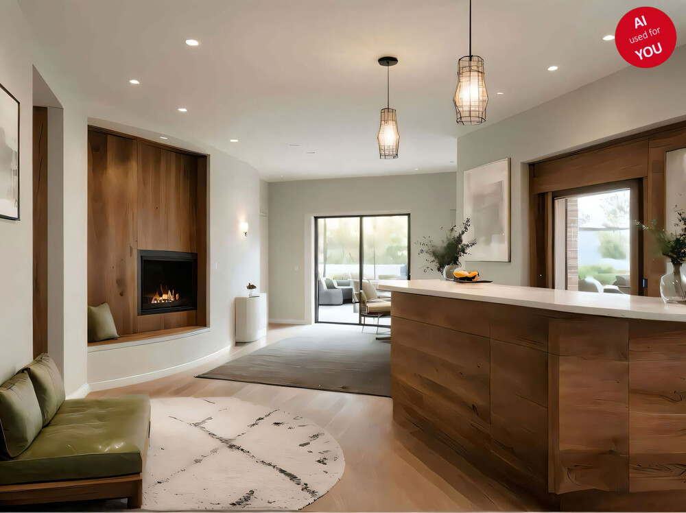 piano rialzato: rezeption, ufficio, sala pranzo, cucina, camera con spazio