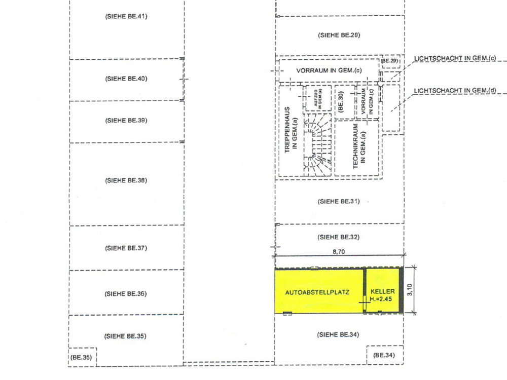 box garage (19,57 mq); posto auto assegnato (17,42 mq),