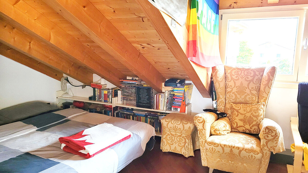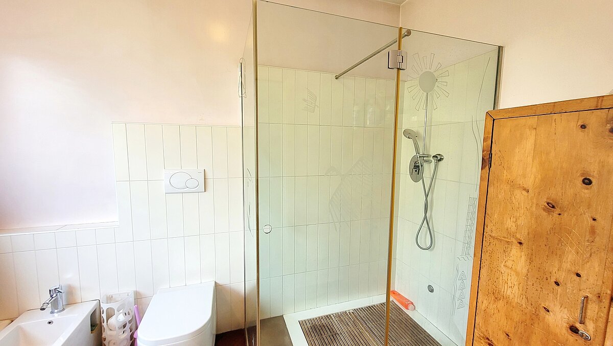Con cinque vani e tre eleganti bagni, l’abitazione offre spazio sufficiente per famiglie e per chi desidera vivere in libertà. Il giardino ed i soleggiati balconi invitano a rilassarsi e a godere l’aria fresca e la tranquillità circostante.