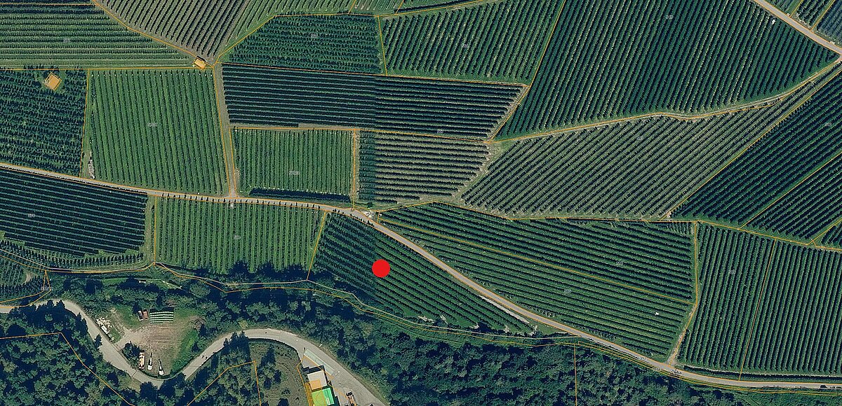 Frutteto con una superficie di 3.892 m², piantagione di Golden, Klon B, dotato anche con un impianto di irrigazione a gelo.