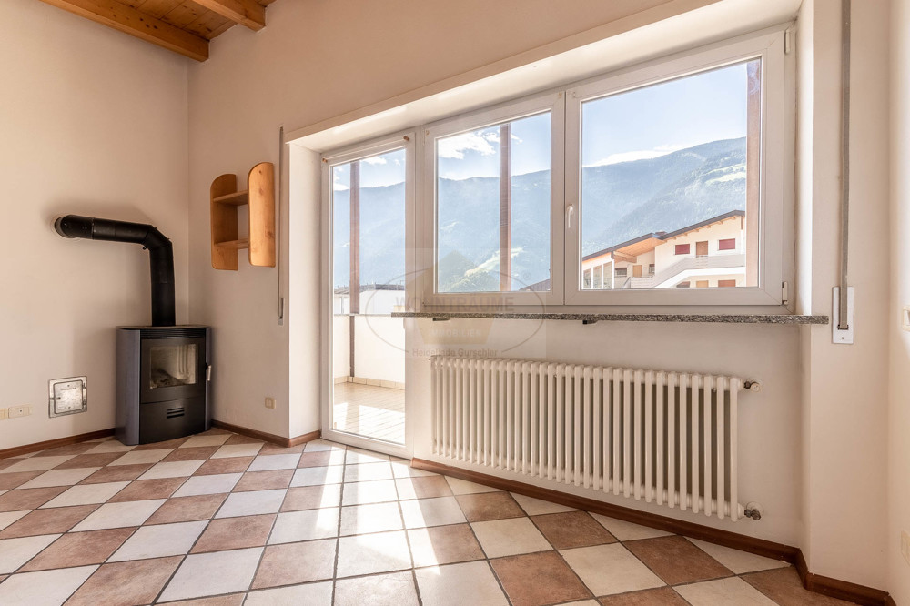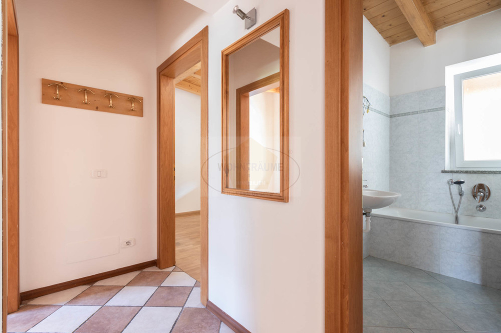 Questo trilocale mansardato molto soleggiato e ben tenuto si trova a Plaus, Via dei Campi, in una tranquilla zona residenziale ed è composto da un disimpegno, cucina, soggiorno, 2 camere da letto, bagno con vasca e finestra, ampio balcone esposto a sud, terrazza esposta a sud di fronte all'ingresso dell'appartamento e dispone inoltre di un vano cantina e di un garage box.