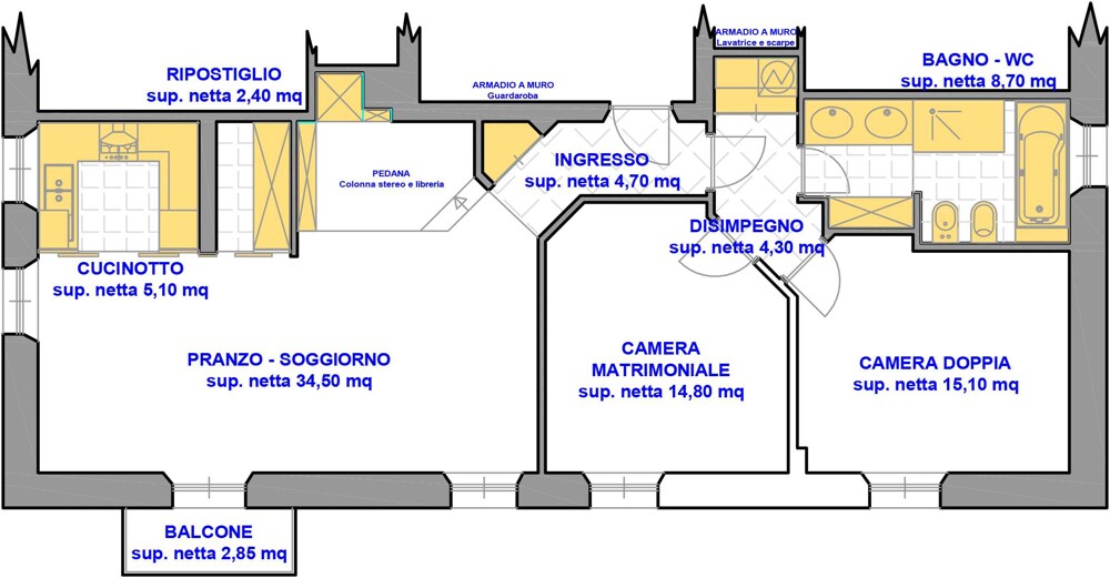 - Bagno con vasca e doccia, WC e bidet, naturalmente con finestra