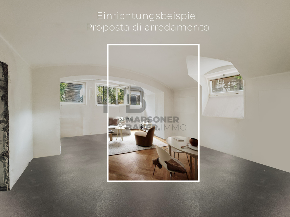 Proponiamo in vendita questo spazioso appartamento - unità abitativa o studio n. 1 al piano seminterrato della storica Villa "MIMOSA", costruita nel 1908 dal rinomato architetto Peter Delugan e attualmente in fase di ristrutturazione.