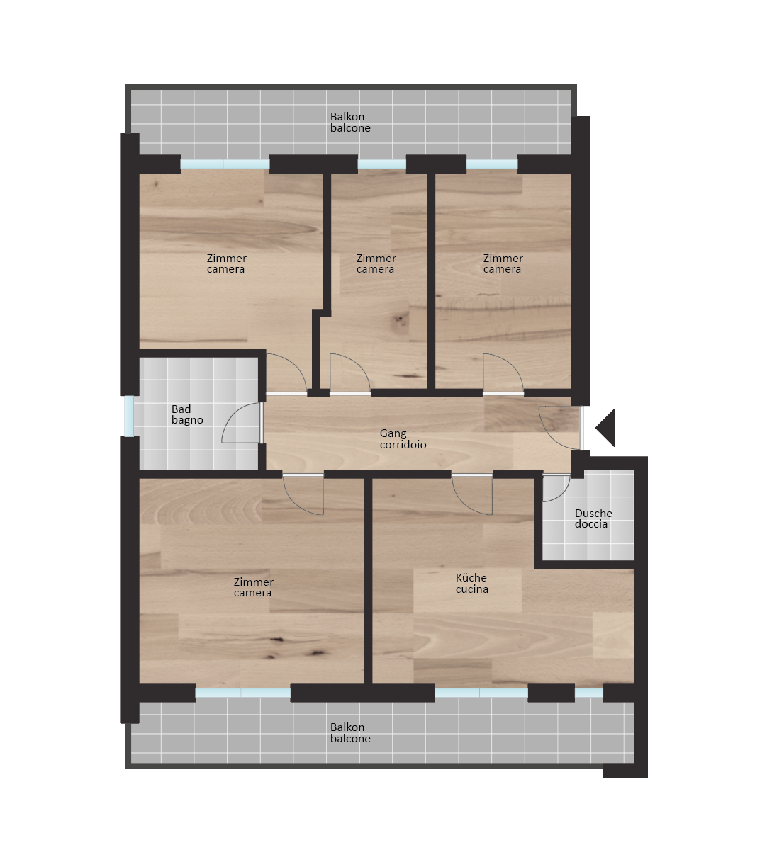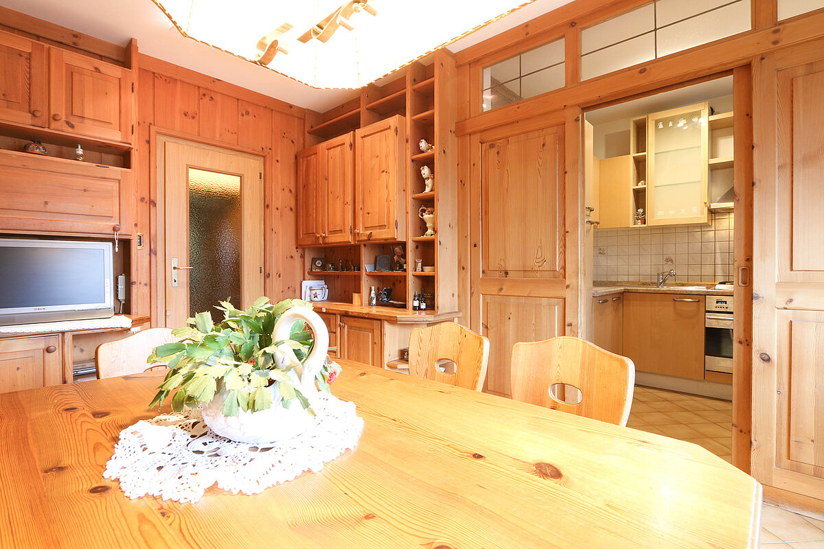 La zona giorno rappresenta il cuore dell’immobile e offre un ampio e luminoso soggiorno con un’atmosfera accogliente e molteplici possibilità di arredamento. La cucina separata con zona pranzo integrata dispone di spazio sufficiente.