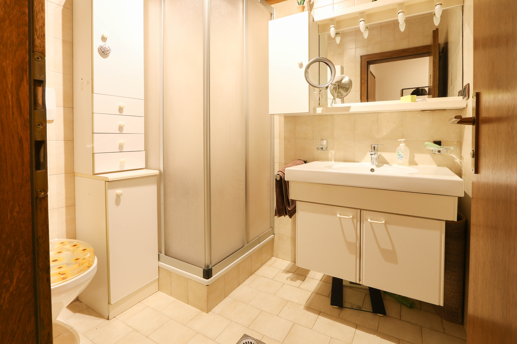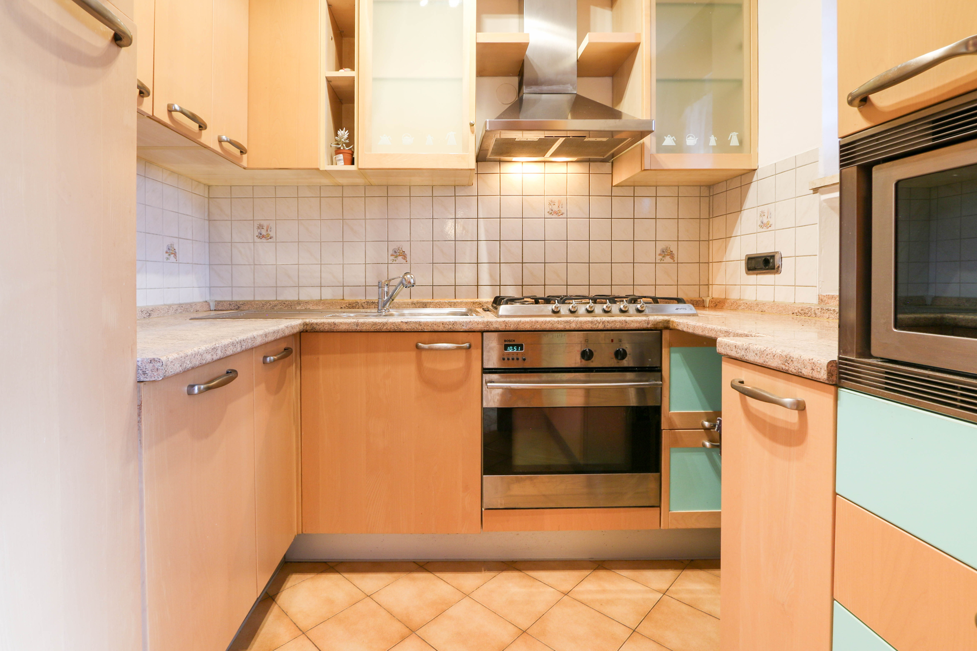 L’appartamento è composto da tre camere da letto ben distribuite, ideali come camera matrimoniale, camerette, stanza per gli ospiti o studio.