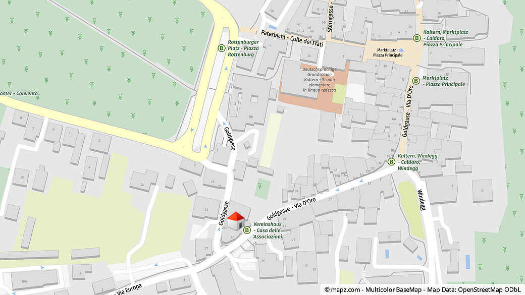 Al 2° piano di un edificio residenziale e commerciale ben curato del 1972 si trova questo studio/ufficio versatile con una superficie lorda di circa 67 m². La posizione in Vicolo D'Oro offre un ambiente tranquillo e allo stesso tempo centrale nel cuore di Caldaro sulla Strada del Vino.