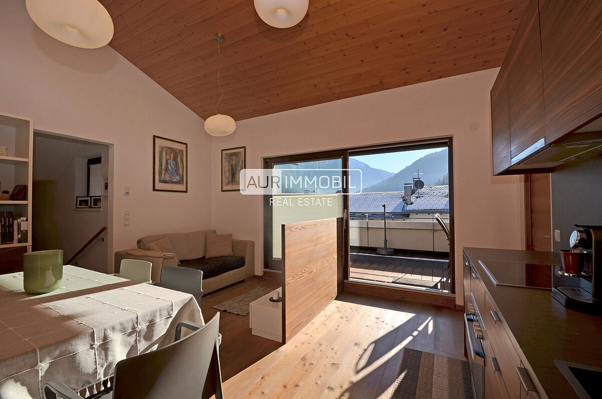 Situato in una bella posizione di Lutago e a pochi minuti a piedi dal centro, questo trilocale arredato con gusto si trova all’ultimo piano ed è composto da: ingresso con guardaroba, accogliente cucina abitabile moderna, due camere da letto, un bagno finestrato, nonché un’ampia terrazza perimetrale, accessibile direttamente sia dalla cucina abitabile sia da entrambe le camere da letto.