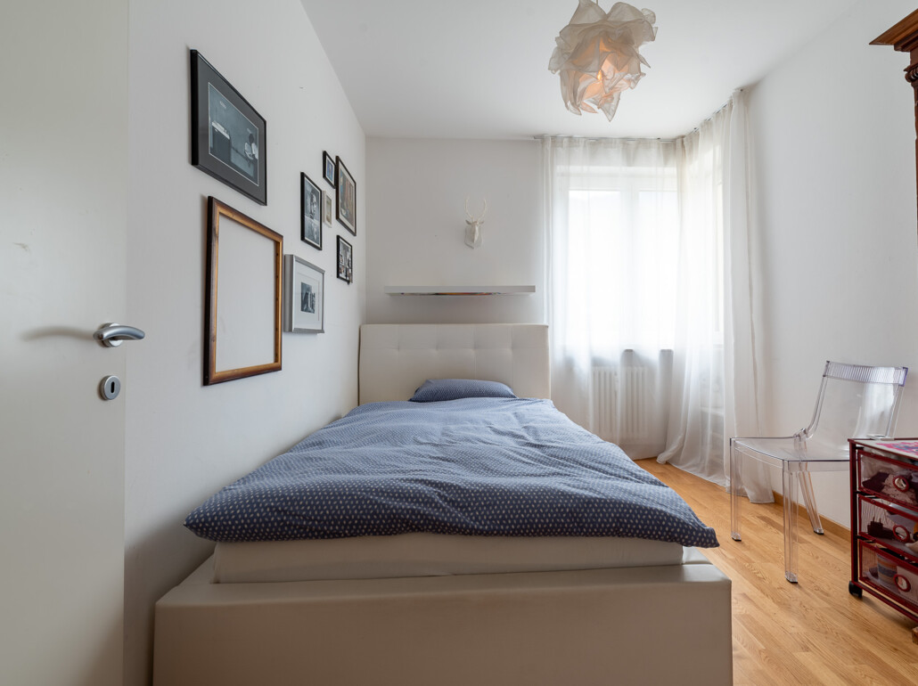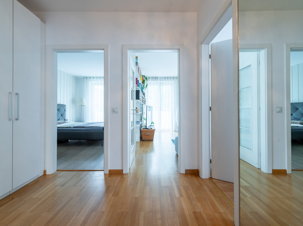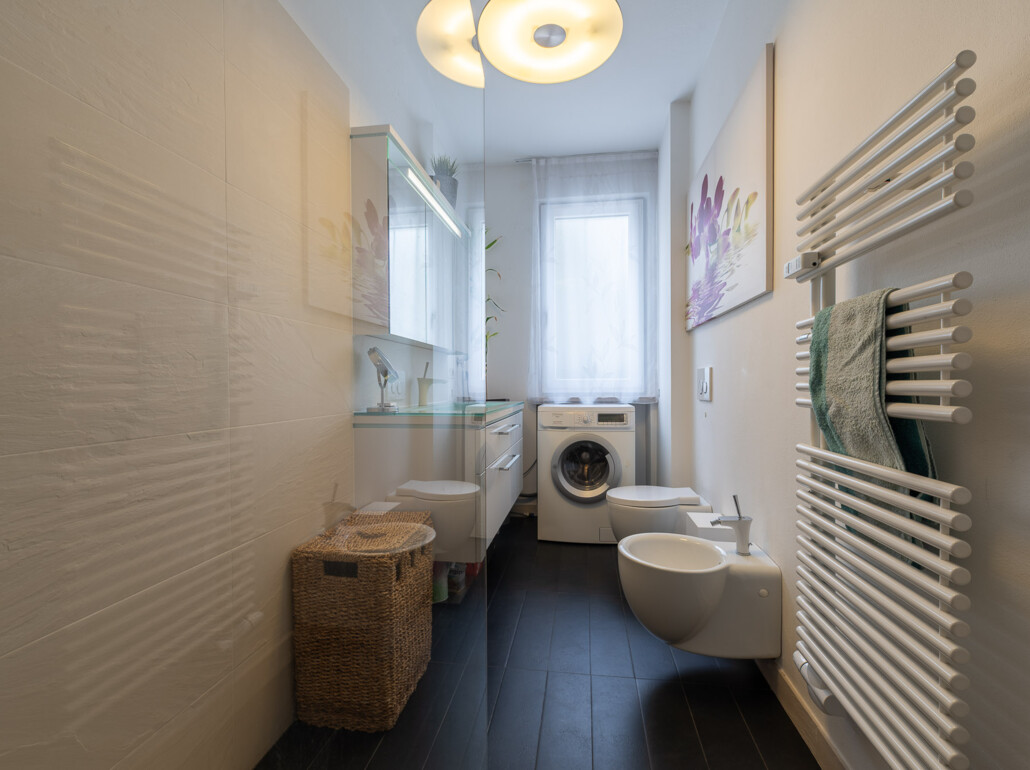 L’appartamento si distingue per una distribuzione degli spazi ben studiata e un’atmosfera abitativa piacevole. È composto da due camere da letto, di cui una dotata di una piccola cabina armadio, un soggiorno accogliente, una cucina separata, un bagno finestrato e un ampio ingresso.