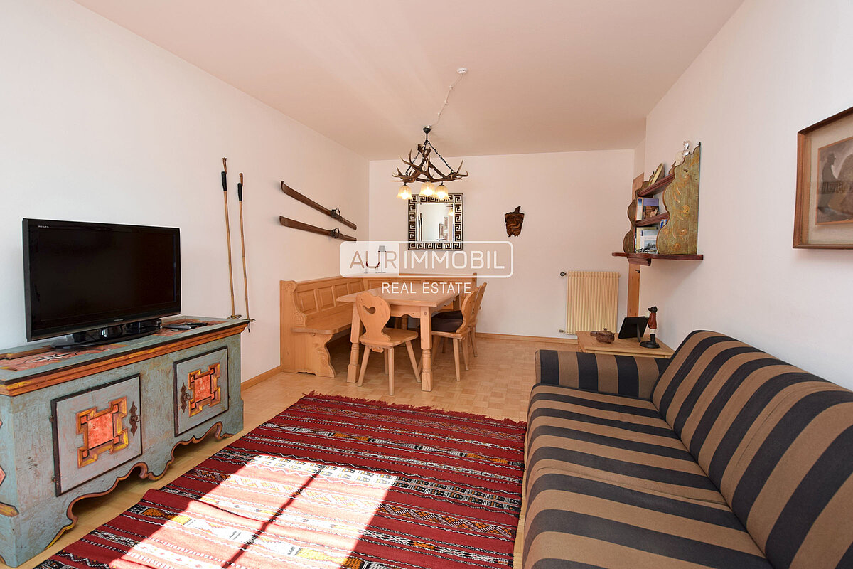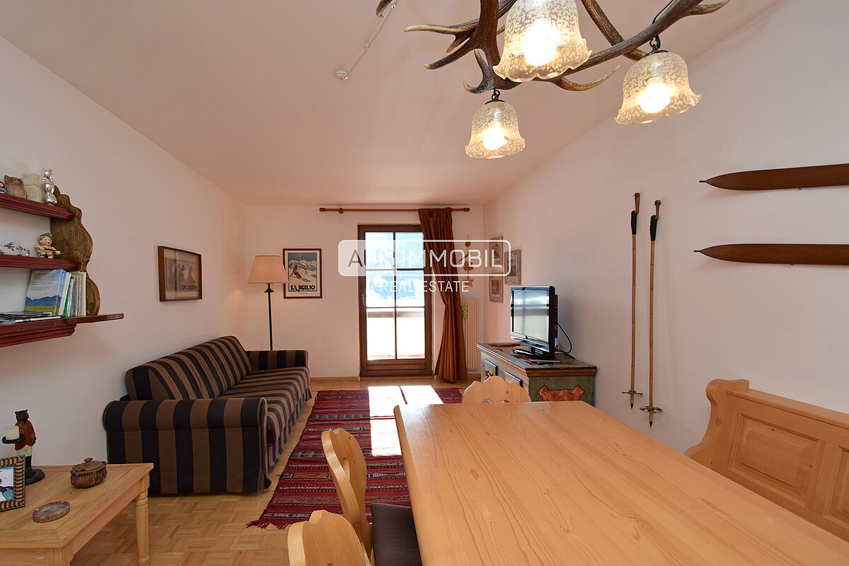 Il trilocale si trova al primo piano e comprende un atrio con cucina, un soggiorno con area pranzo, una camera da letto, un bagno e un balcone.