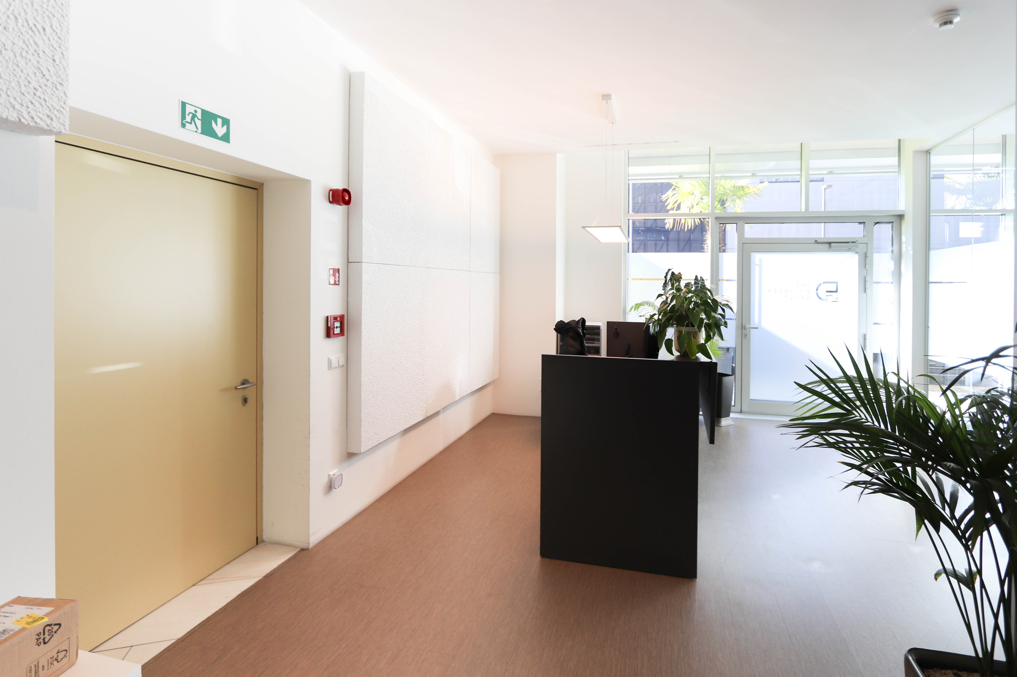 L’arredamento (pareti in vetro nella parte anteriore, cucina, pannelli acustici, moquette nella parte posteriore, tutte le lampade e i mobili) può essere rilevato dall’attuale inquilino al prezzo di € 30.000.