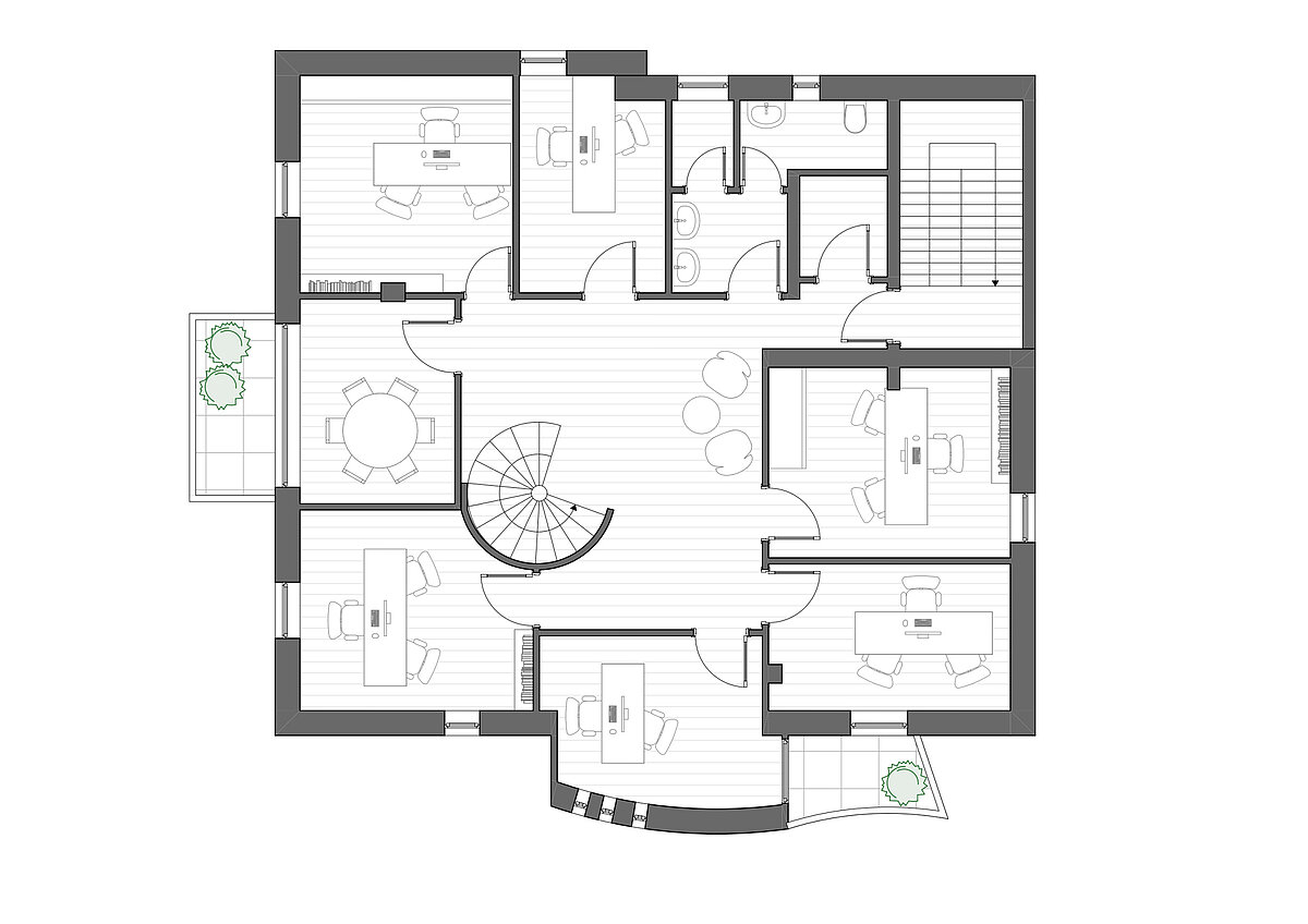 L’ufficio viene locato in gran parte arredato, pronto per essere operativo da subito. È inoltre dotato di impianto di riscaldamento e climatizzazione autonomi, e servito da ascensore privato che collega direttamente i tre livelli interni, incluso nel perimetro della proprietà.