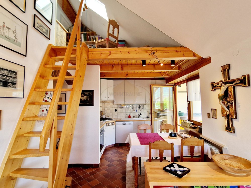 Questo bilocale molto accogliente e completamente arredato si trova all'ultimo piano di un condominio ed è composto da ingresso, un'ampia cucina abitabile con un balcone soleggiato e vetrato rivolto a sud, un ripostiglio, una camera da letto, un bagno e una doccia/WC nonché una galleria all'ultimo piano, raggiungibile tramite le scale dal soggiorno e adatta come rifugio accogliente/angolo lettura/ufficio ecc. L'appartamento è in ottime condizioni, nel 2004 sono state installate nuove finestre e il balcone è stato smaltato. L'appartamento è molto adatto come appartamento per le vacanze o potrebbe essere interessante anche come investimento immobiliare.