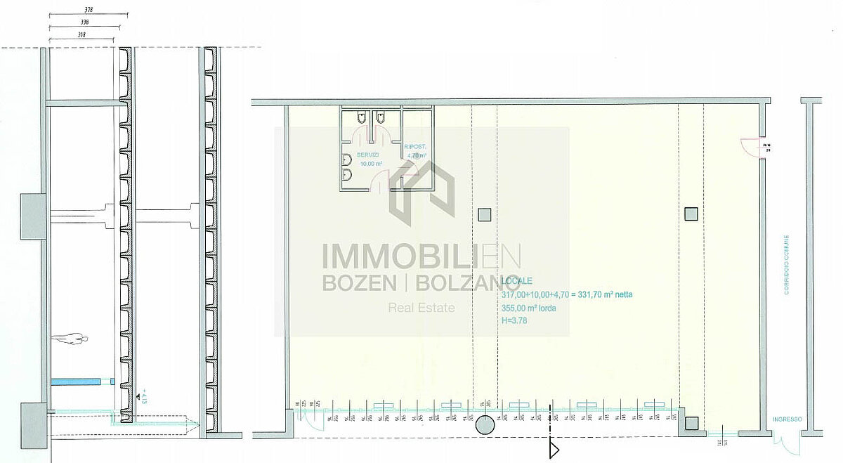 All’interno di un edificio commerciale a Settequerce è disponibile al piano terra una superficie ad uso artigianale/commerciale estremamente versatile, con una metratura complessiva di circa 375 mq. L’unità si presta in modo ottimale ad attività produttive e ad altri utilizzi di tipo commerciale, distinguendosi per una dotazione funzionale e ben organizzata. È presente un’area servizi integrata con doccia. L’accesso avviene comodamente dall’esterno tramite un portone sezionale con codice, che garantisce operazioni di carico e scarico efficienti e un regolare svolgimento delle attività.